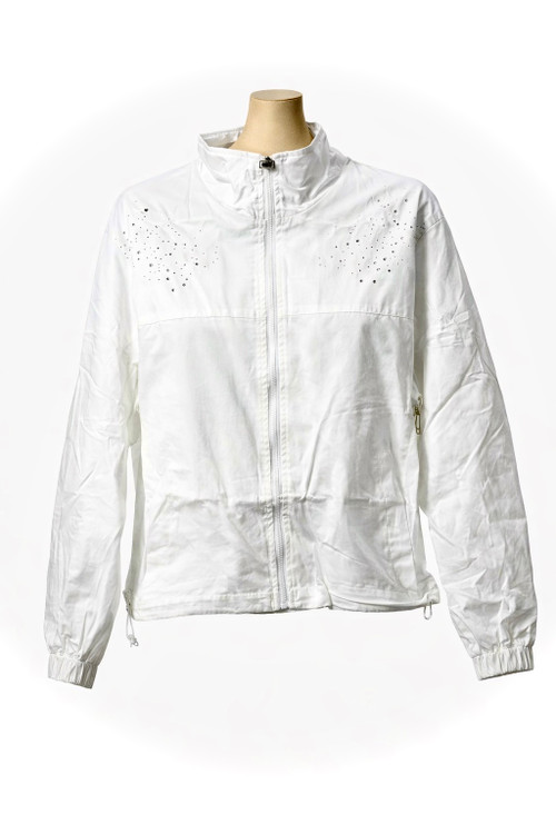 کاپشن بامبر زنانه سفید نگین دار وارداتی آستردار فریسایز